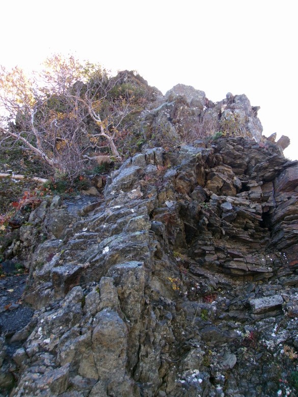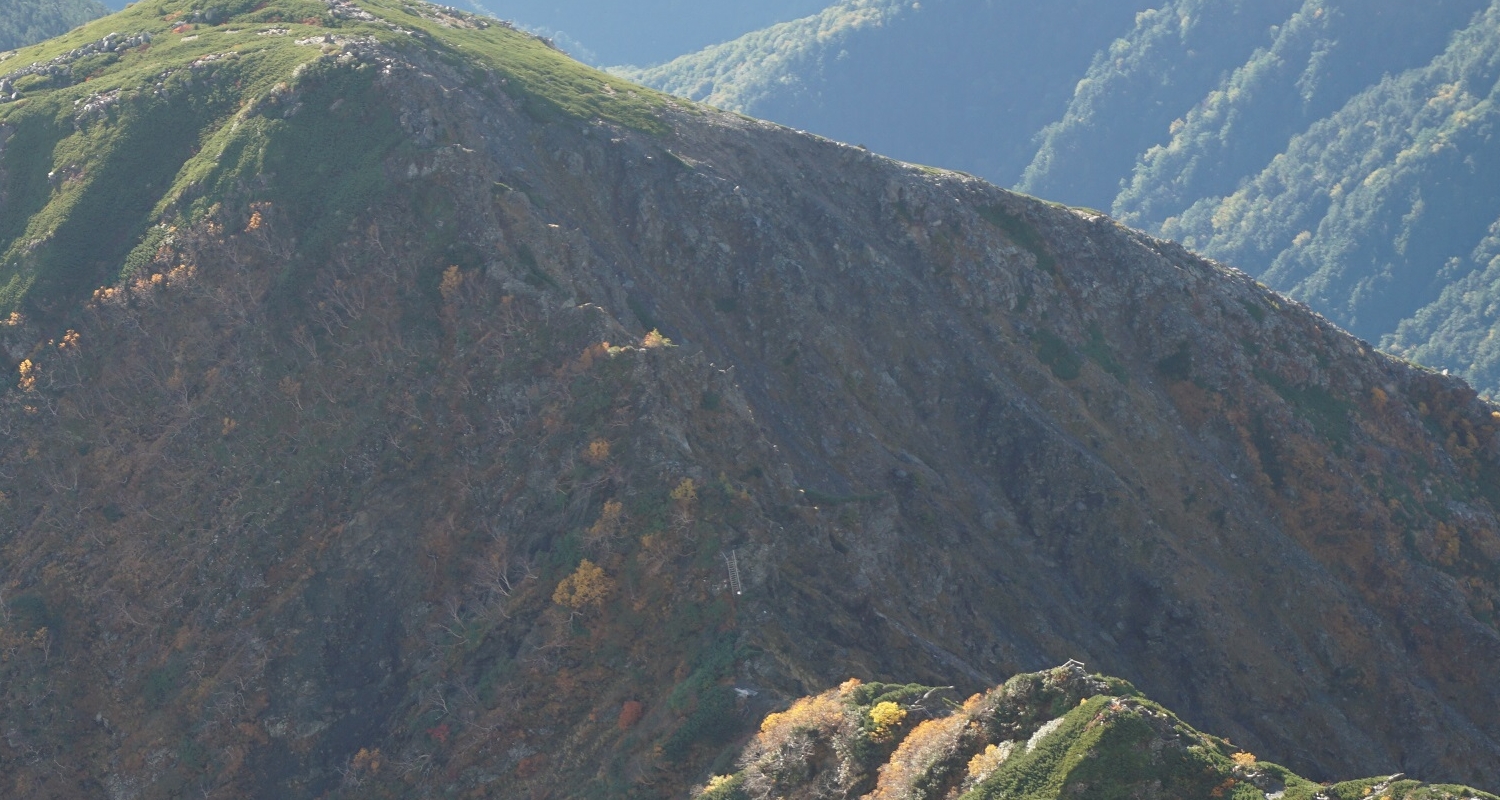 吊尾根分岐を過ぎ、トラバース分岐に至る間で2014年の山行では所々でキタダケソウが咲いていたのを思い出した。秋のキタダケソウがどんな状態になっているのかと気を付けながら下ったが、それらしきキタダケソウを見つけることは出来なかった。