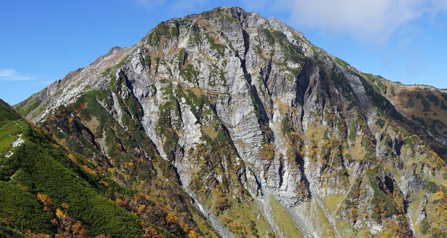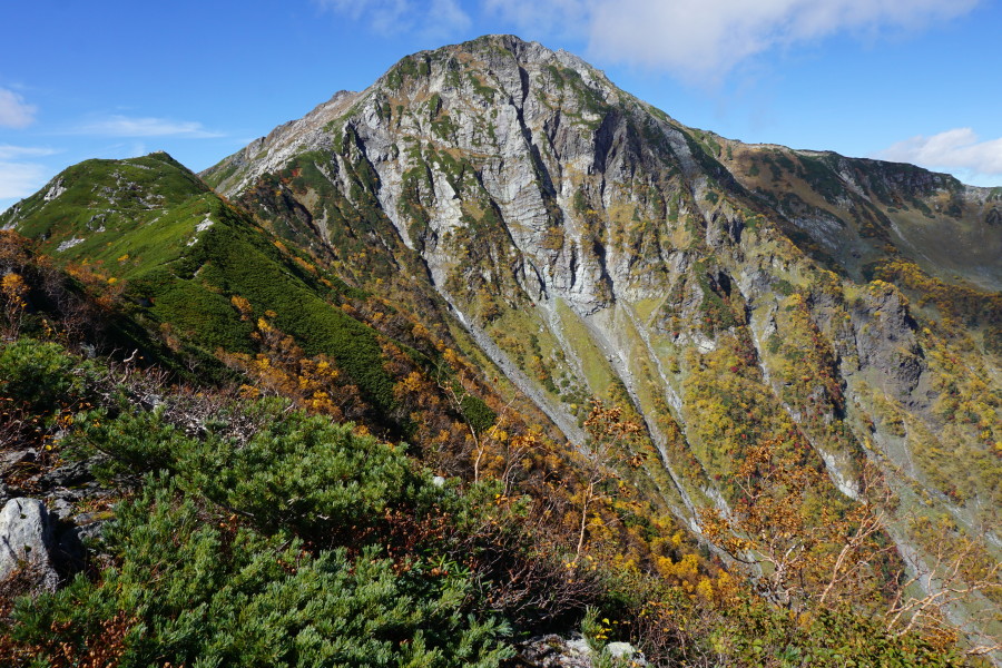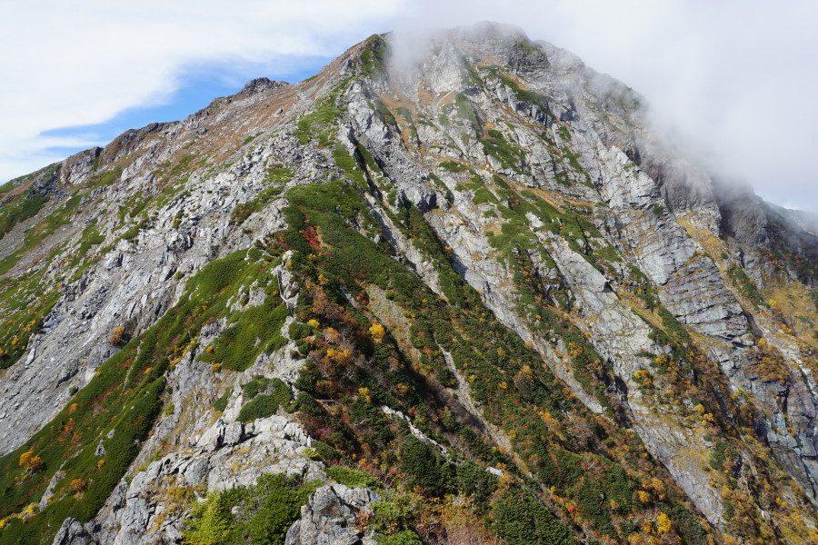 八本歯のコルへの稜線上で見る北岳バットレスの横顔